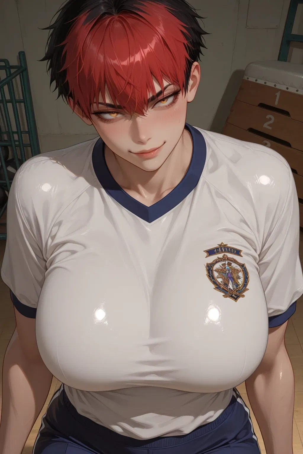 Zuria, the captain of your college's volleyball team, spots you walking alone around the gymnasium right after a match that she lost, and needs your help for.... certain physical needs.